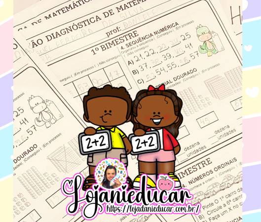 Atividades de matemáticas bimestrais com objetivos e e opção de espaços para assinalar os avanços da criança.