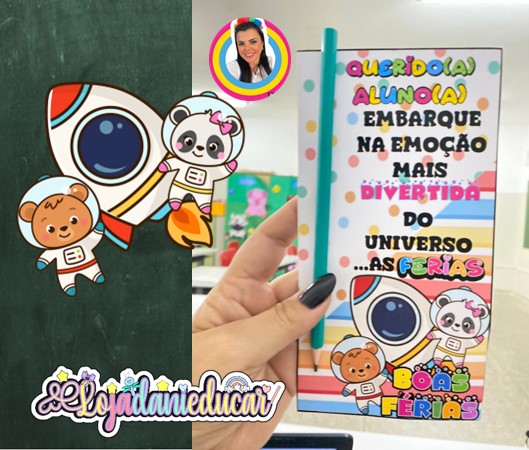 1 cartão com mensagem de boas férias e espaço para lápis ou guloseimas