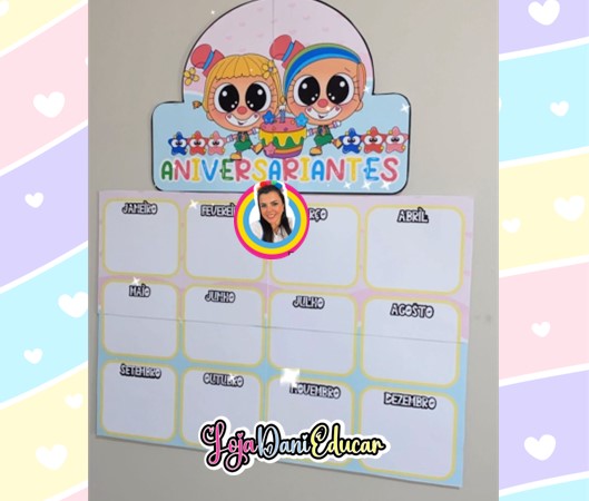 I cartaz 3×3 com espaços dos meses para registrar os aniversariantes da turma