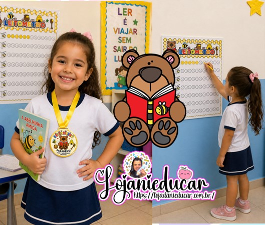 1 PAINEL LEITÔMETRO ABELHA COLORIDO E ESPAÇOS DE LIVROS PARA COLORIR